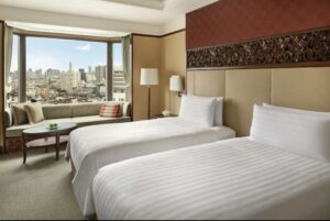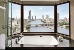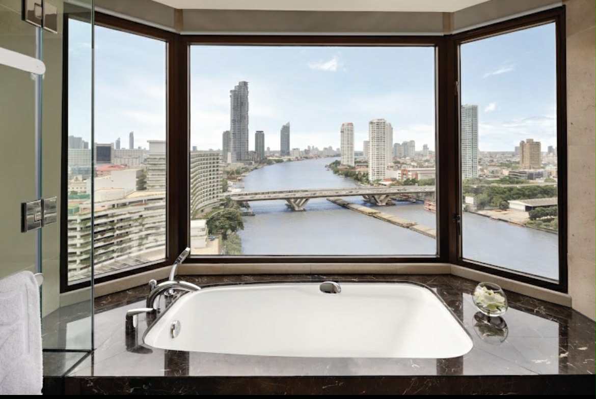 โรงแรมสุดหรูริมแม่น้ำเจ้าพระยา อยู่ห่างจากสถานีรถไฟฟ้าสะพานตากสินโดยใช้เวลาเดินเพียง 3 นาที และห่างจากพระบรมมหาราชวังที่สร้างขึ้นในปี พ.ศ. 2325 ราว 6 กม.